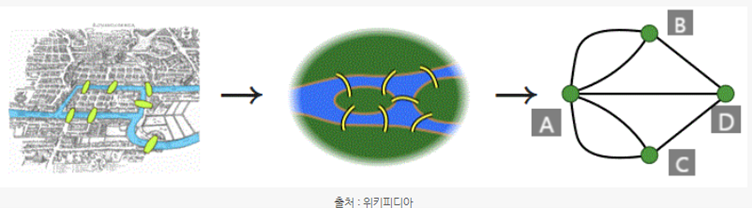 18세기 쾨니히스베르크라는 도시에 있는 두 개의 큰 섬이 총 7개의 다르고 연결되어 있을 때 어떻게 하면